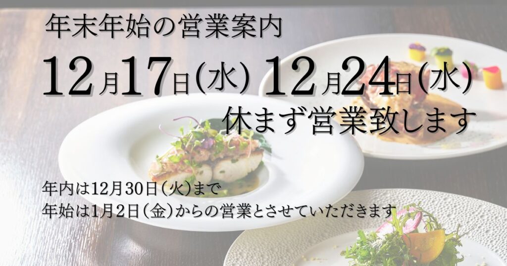 12月17日(水)および12月24日(水)は特別営業いたします。