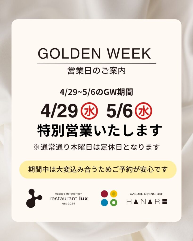 【ゴールデンウィーク期間の営業について】